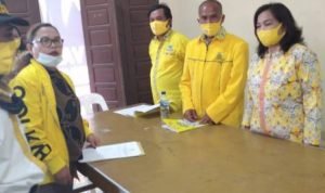 Rosinta mendatangi kantor DPD Golkar Samosir di jalan lintas Pangururan-Simanindo, Desa Parsaoran I, untuk menyerahkan berkas pendaftaran sebagai calon Ketua DPD Golkar Samosir periode 2020-2025, Jumat (28/8/2020).