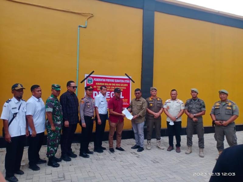 Langkat, POL | Tempat hiburan malam One King Golden (OKG) yang berlokasi di Jalan Karya Jadi Kecamatan Batang Serangan, kembali di lakukan penyegelan oleh Pemerintah Provinsi Sumatera Utara, Rabu (13/12/2023).