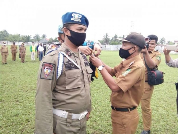Langkat, POL | Petugas operasi Yustisi Langkat Hilir melaksanakan apel kesiapan tim penindakan operasi Yustisi, dalam rangka peningkatan disiplin dan penegakan hukum protokol kesehatan covid 19, di Stadion Nur Cahaya Kecamatan Tanjung Pura, Langkat, Selasa (29/9/2020).