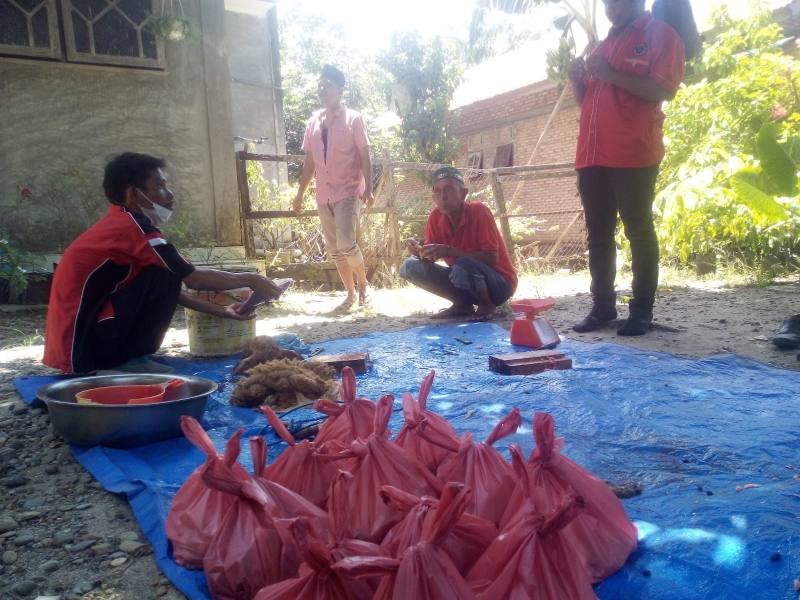 Labura, POL | Pengurus Anak Cabang (PAC) PDI-Perjuangan Kualuh Selatan Kab Labuhanbatu Utara Provinsi Sumatera Utara beserta Anggota dan Ranting Desa bagi-bagi daging kurban di Hari Raya Idul Adha 1442 H.