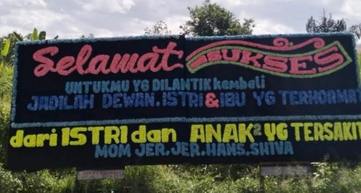 Pelantikan tiga puluh orang anggota DPRD Kabupaten Toba periode 2024-2029 diwarnai satu kiriman papan bunga yang unik menggelitik dan mengherankan karena isinya begitu banyak pertanyaan dan tujuan untuk siapakah ucapan selamat tersebut.