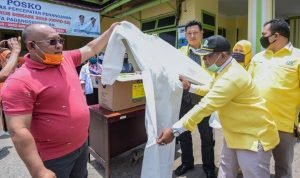 Padangsidimpuan, POL | Partai Golkar Kota Padangsidimpuan memberikan bantuan Alat Pelindung Diri (APD) berupa 50 pcs baju hazmat yang dapat dipergunakan tim medis dan para medis penanganan Covid-19 di ruang isolasi.
