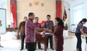 Yang dilanjutkan dengan penandatangan berita acara dan penyerahan secara simbolis wewenang, tanggung jawab dan kewajiban oleh pejabat yang bersangkutan disaksikan Sekretaris Daerah, Jabiat Sagala, Inspektorat Daerah, Gomgom Naibaho dan Kepala BKD, Augus Sinaga.