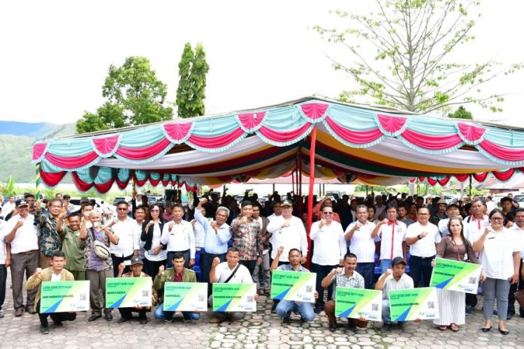 Samosir, POL | Peduli terhadap pekerja rentan bukan penerima upah, Bupati Samosir Vandiko T. Gultom memberi bantuan BPJS Ketenagakerjaan gratis. Kartu Bantuan BPJS gratis diserahkan kepada penerima di Halaman Kantor Bupati Samosir, Rabu (10/07/2024)..