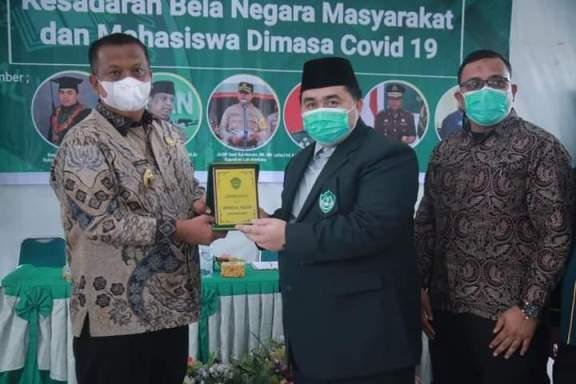 Dalam kesempatan, Pj Bupati Labuhanbatu Mulyadi Simatupang menerima plakat dari Universitas Al Washliyah Labuhanbatu yang diserahkan langsung oleh Rektor Universitas Al Washliyah Labuhanbatu Bapak Basyarul Ulya.