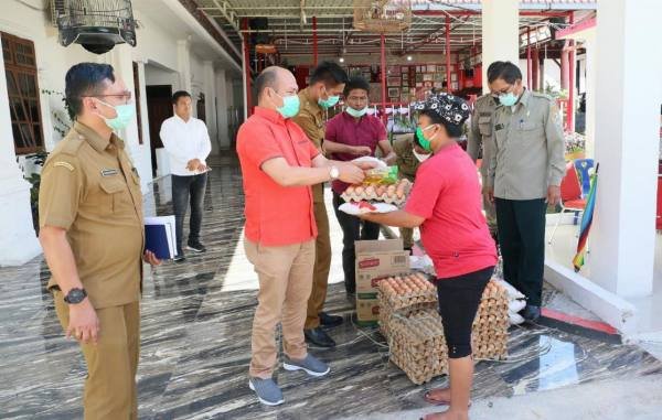Tarutung, POL | Pekerja katering, petenun,pengemudi ojek online dan pekerja harian lepas yang semuanya terdampak dari COVID-19 mendapat bantuan Sembako dari Bupati Taput Nikson Nababan.