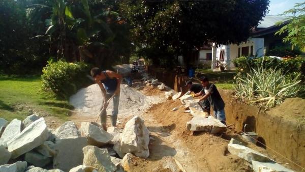 “Setelah saluran air yang sekarang sedang dikerjakan ini selesai, diharap jalan akan senantiasa tetap layak dilintasi.Lantaran air hujan kelak sudah dapat tertampung dan dialirkan lewat drainase menuju ke saluran parit induk yang ada di pinggir desa,” urai Surya.