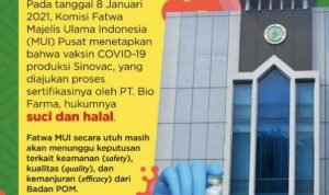 Dalam sosialisasinya melalui group WhastApo, dan media sosial lainnya, Jum’at (8/1/2021) Kadis Kominfo H. Rahmad Hidayat Siregar, S.Sos, M.Si menyampaikan dimana Komisi Fatwa Majelis Ulama Indonesia (MUI) pada 08 Januari 2021 telah menetapkan Vaksin Covid-19 buatan Sinovac yang diajukan proses sertifikasinya oleh PT Bio Farma hukumnya Suci dan Halal.