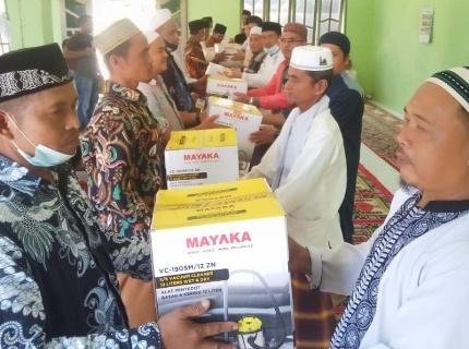 Labuhanbatu, POL | Pemerintah kabupaten (Pemkab) Labuhanbatu bersama Kementerian Agama (Kemenag) Kabupaten Labuhanbatu dalam kunjungan safari ramadhan pemkab Labuhanbatu, menyerahkan bantuan kepada para Nazir Masjid di Desa Selat Beting Kecamatan Bilah Hilir, Sabtu (01/05/2021).