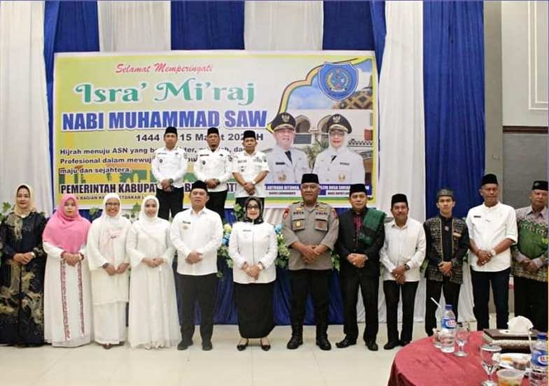 Labuhanbatu, POL | Pemerintah Kabupaten Labuhanbatu menggelar peringatan Isra’ Mi’raj Nabi Muhammad SAW 1444 H dengan mengangkat Tema; ‘Hijrah menuju ASN yang Berkarakter, Amanah, dan Profesional’ dalam mewujudkan Labuhanbatu yang maju dan sejahtera yang dilaksanakan di Ballroom Suzuya Rantauprapat. Rabu (15/03/2023).