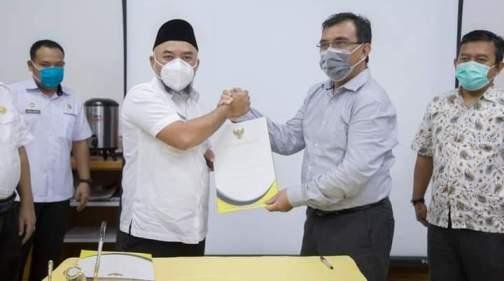 Labuhanbatu, POL | Pemerintah Kabupaten Labuhanbatu menerima tanah hibah seluas 3 Hektar yang diperuntukan pembangunan pasar Aek Nabara dari PT Pangkatan Indonesia, ditandai dengan penandatanganan surat hibah oleh Head Of Legal PT Pangkatan Indonesia Oscle Simbolon dan Bupati Labuhanbatu H Andi Suhaimi Dalimunthe, di ruang rapat bupati, Rabu (13/1/2021).