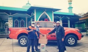 Langkat, POL | Pemerintah Kabupaten Langkat memberikan bantuan pelaralatan Protokol Kesehatan Covid 19 (Prokes) kepada BKM Al Ikhwan, berupa Masker, Hand Sanitizer dan Disinfektan, dihalaman Masjid Al Ikhwan, Kecamatan Stabat, Jumat (19/2/2021).