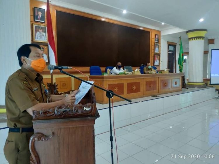 Langkat, POL | Pemerintah Kabupaten Langkat menggelar Bimbingan Teknis (Bimtek) pengelolaan resiko atas program penanganan covid 19 di lingkungan Pemkab Langkat, di Ruang Pola Kantor Bupati Langkat, Senin (21/9/2020). Bimtek dibuka Bupati Langkat Terbit Rencana PA melalui Sekdakab Langkat Dr. H. Indra Salahudin.