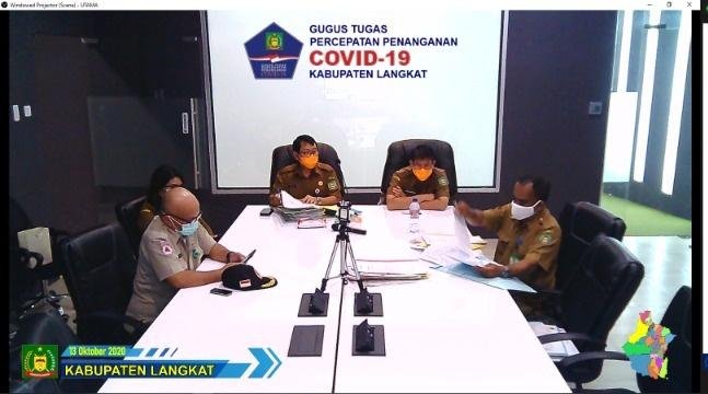 Langkat, POL | Bupati Langkat Terbit Renacana PA melalui Sekdakab Langkat Dr. H. Indra Salahudin mengikuti Rapat Koordinasi (Rakor) penanganan covid 19 di Sumatera Utara secara virtual, dari Ruang LCC Kantor Bupati Langkat, Stabat, Selasa (13/10/2020).