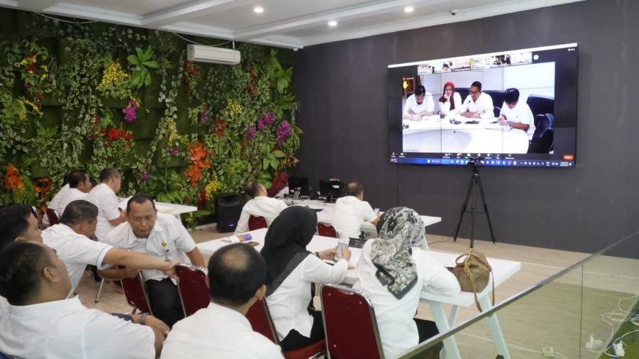 Langkat, POL | Pemerintah Kabupaten Langkat Mengikuti Sosialisasi Indikator dan sub indikator Monitoring Center For Prevention (MCP) Tahun 2023 dan Program Tematik secara Zoom Meeting, bertempat di Ruang Langkat Command Center Kantor Bupati Langkat, Rabu (29/3/2023).