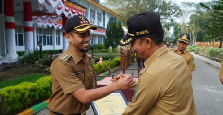 Langkat POL | Plt.Bupati Langkat H.Syah Afandin SH diwakili Staf Ahli Bid. Pemerintahan, Hukum dan Politik Drs. H. Rudi Kinandung, M.AP menjadi pembina apel gabungan di lingkungan Pemerintah Kabupaten Langkat, di Halaman Kantor Bupati Langkat, Senin (22/1/2024).