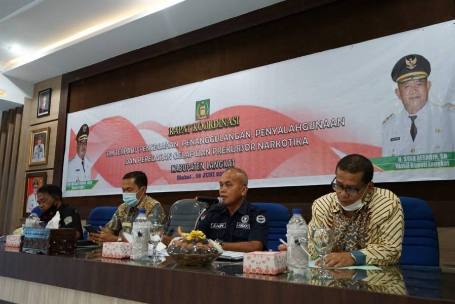 Langkat, POL | Pemerintah Kabupaten Langkat, melalui Badan Kesbangpol menggelar rapat koordinasi (Rakor) terpadu pencegahan, penanggulangan, penyalahgunaan, peredaran gelap dan prekursor narkotika (P4GN dan PN), bertempat di Ruang Pola kantor Bupati Langkat, Stabat, Kamis (3/6/2021).