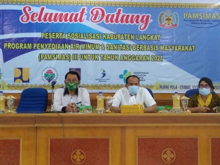 Langkat, POL | Pemkab Langkat menggelar kegiatan sosialisasi tentang program Penyediaan Air Minum dan Sanitasi Berbasis Masyarakat (PAMSIMAS) III Tahun Anggaran  (TA) 2021, di ruang Pola Kantor Bupati Langkat, Stabat, Jum’at (11/9/2020).