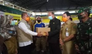 Stabat, POL | Pemerintah Kabupaten Langkat menerima Bantuan Sosial (Bansos) berupa sembako pangan untuk penanggulangan covid 19 dari Pemerintah Provinsi Sumatera Utara, di Gedung Gor Stabat, Selasa (19/5/2020).