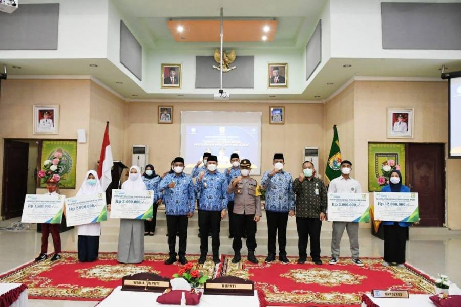 Seusai melaksanakan upacara, Bupati kemudian menyerahkan secara simbolis beasiswa pendidikan kepada para pelajar yang menjadi ahli waris peserta BPJS Ketenagakerjaan. Penyerahanan simbolis ini diberikan kepada 5 pelajar dari jenjang yang berbeda mulai dari SD hingga perguruan tinggi.