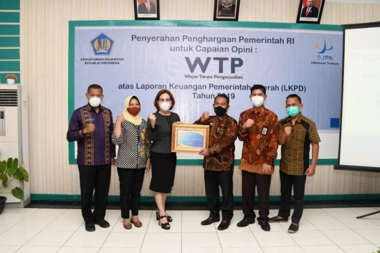 Tebing Tinggi, POL | Pemerintah Kabupaten Serdang Bedagai (Pemkab Sergai) menerima piagam penghargaan untuk capaian Opini Wajar Tanpa Pengecualian (WTP) atas Laporan Keuangan Pemerintah Daerah (LKPD) tahun 2019 dari Kementrian Keuangan RI bertempat di Aula Kantor Pelayanan Perbendaharaan Negara (KPPN) Tebing Tinggi, baru-baru ini.
