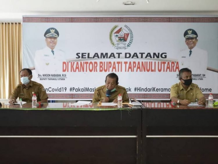 Tarutung, POL | Pemkab Tapanuli Utara mensosialisasikan Perbup No 40 Tahun 2020 yang mengatur tentang disiplin protokol kesehatan guna mencegah Covid-19.