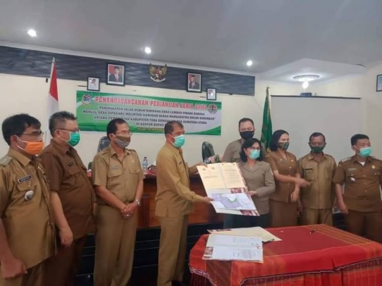 Toba, POL | Pemkab Toba bersama Balai Besar Konservasi Daya Alam Provinsi Sumatra Utara mendatangani kerjasama membangun jalan dalam Kawasan Suaka Margasatwa di Ruang Balai Data Pemkab Toba, Selasa (8/9/2020).