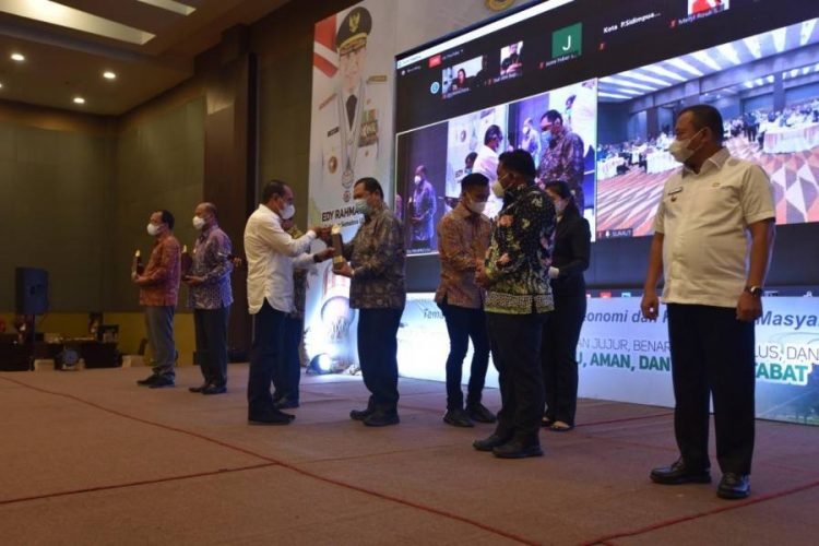Gubernur Sumut Edy Rahmayadi mengucapkan selamat kepada penerima penghargaan dari Kabupaten / Kota se-Sumut, Gubernur juga mengajak Pemda untuk membangun daerah yang lebih baik lagi dengan memperhatikan masyarakat yang saat ini dalam kondisi memprihatinkan ditengah pendemi Covid-19.