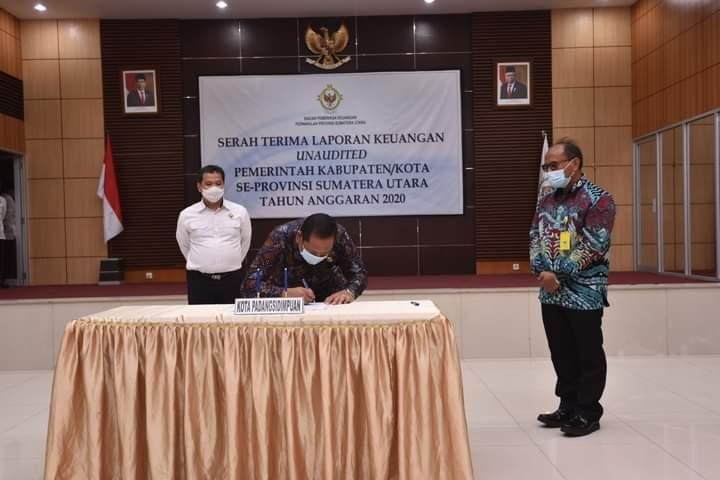 Padangsidimpuan, POL | Pemerintah kota (Pemko) Padangsidimpuan menyerahkan laporan keuangan unaudited tahun anggaran 2020 di gedung BPK perwakilan Provsu, Senin (22/3/2021).