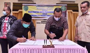 Padangsidimpuan, POL | Pemerintah kota Padangsidimpuan bersama Pengelolah Pasar Rakyat Mahera Padangsidimpuan tanda tangani (MOU) kesepakatan bersama tentang pembangunan dan pengelolaan Pasar Mahera Padangsidimpuan di Aula Kantor Walikota Padangsidimpuan. Jumat (19/2/2021).