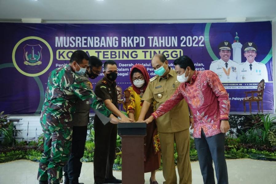 Tebing Tinggi, POL | Musyawarah Perencanaan Pembangunan Rencana Kerja Pemerintah Daerah (Musrenbang RKPD) Tahun 2022 Kota Tebing Tinggi digelar dengan tema peningkatan perekonomian melalui infrastruktur pertanian, UMKM dan pelayanan dasar dalam rangka pemulihan ekonomi daerah mendukung Tebing Tinggi sebagai kota jasa dan perdagangan.