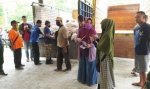 Stabat, POL | Pemkab Langkat mendistribusikan Bantuan Sosial (Bansos) paket sembako Pemprovsu untuk masyarakat terdampak covid 19 di wilayah Kecamatan Stabat, Kamis (21/5/2020).