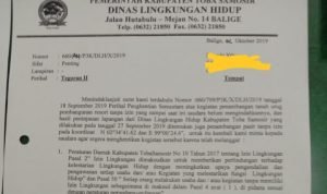 Surat kami yang kedua bernomor : 600/749/P3K/DLH/X/2919 ,tanggal 06 Oktober 2019 dan suratnya kami tembuskan kepada, Bupati Toba,Kapolres Toba,Ka Satpol PP, Kapolsek Lumban Julu,Camat Lumban Julu dan Kepala Desa Sionggang Tengah sebut Bangun .