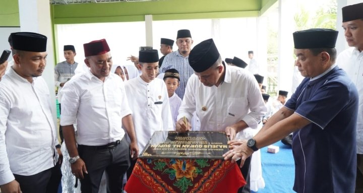 Pj.Bupati Langkat H. M. Faisal Hasrimy, AP.,MAP menghadiri peresmian Majelis Qur’an Hj. Supiah di dusun I Desa Lau Mulgap Kecamatan Selesai, Minggu (3/3/2024).