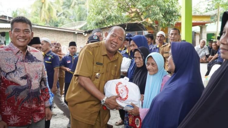 Langkat, POL | Pelaksana Tugas (Plt) Bupati Langkat H Syah Afandin SH ikut membagikan tali asih berupa 270 paket sembako kepada Kaum Dhuafa pada peringatan hari lahirnya Komunitas Masyarakat Peduli Kawan (KOMPAK) kedua (2) tahun, di Lapangan Masjid Baitul Ma’aruf Desa Tanjung Lenggang, Kecamatan Bahorok, Langkat, Senin (10/10/2022).