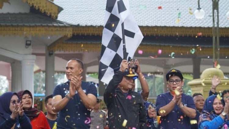 Langkat, POL | Plt Bupati Langkat di wakili Asisten Pemerintahan dan Kesejahteraan Rakyat Drs. H. Mulyono, M.Si melepas peserta Gerak Jalan Santai dalam rangka memperingati Hari Kesehatan Nasional (HKN) ke-59 Tahun 2023, di Tribun Alun-Alun T. Amir Hamzah Stabat, Kamis (9/11/2023).