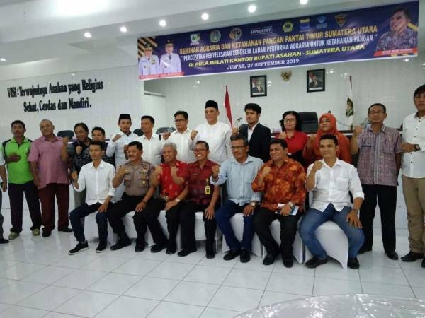 Asahan, POL | Dalam upaya percepatan penyelesaian konflik agraria di Kabupaten Asahan,Perwira Sakti Pantai Timur Sumatera Utara telah melaksanakan kegiatan seminar bertema Agraria dan Ketahanan Pangan, di Aula Melati Kantor Bupati Asahan,Jum’at (27/9/2019) siang.