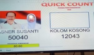Dari informasi yang dihimpun redaksi Media Harian Perjuangan baru , Sesuai dengan Hasil hitungan sementara di center pemenangan PASTI, jumlah suara yang sudah masuk sekitar 80 persen menunjukkan Asner-Susanti mencapai suara 50. 040 (80 %) sedangkan kolom kosong 12.403 suara atau (20 %).