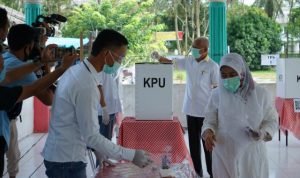 Kisaran, POL | Dalam rangka mesukseskan Pemilihan Kepala Daerah Bupati dan Wakil Bupati di Asahan, Bupati H. Surya BSc didampingi istri Hj. Titiek Sugiharti Surya menggunakan hak pilihnya di TPS 7 Kelurahan Mekar Baru, Kecamatan Kota Kisaran Barat, Rabu (09/12/2020) kemarin.