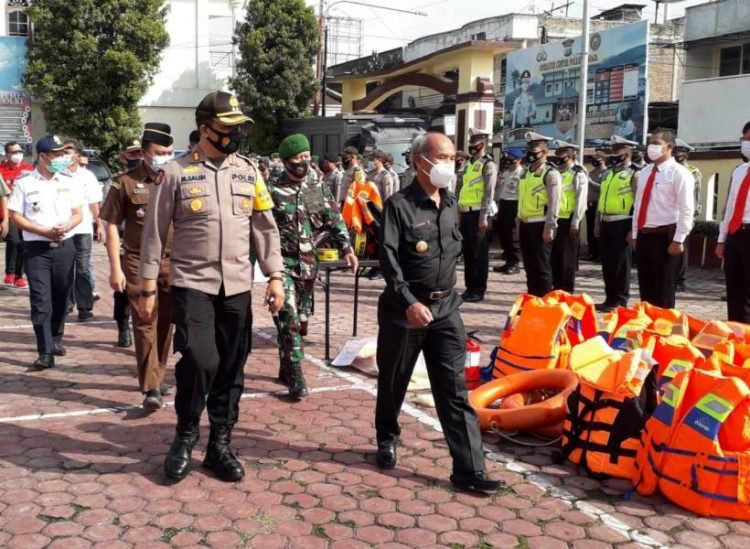 Samosir, POL | Pejabat Sementara (Pjs) Bupati Samosir Lasro Marbun memimpin Apel Kesiapan Antisipasi Bencana Alam di halaman Mapolres Samosir, Rabu (11/11/2020).