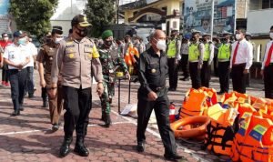 Samosir, POL | Pejabat Sementara (Pjs) Bupati Samosir Lasro Marbun memimpin Apel Kesiapan Antisipasi Bencana Alam di halaman Mapolres Samosir, Rabu (11/11/2020).