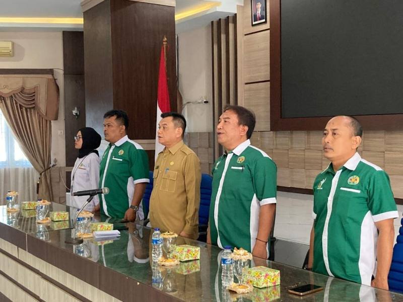 Stabat, POL | Penjabat (Pj) Bupati Langkat, H.M. Faisal Hasrimy, AP, M.AP, yang diwakilkan oleh Asisten Pemerintahan dan Kesejahteraan Rakyat, Drs. H. Mulyono, M.Si, menghadiri acara penarikan dan penjemputan mahasiswa KKNTR Universitas Sumatera Utara (USU) tahun 2024 di Ruang Pola Kantor Bupati Langkat, Senin (22/7/2024).