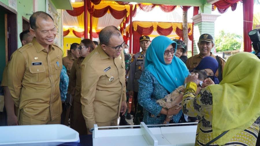 Secanggang, POL | Bupati Langkat H.M. Faisal Hasrimy, AP, M.AP bersama Ketua TP PKK Langkat Uke Retno Wahyuni Faisal mendampingi Ketua TP PKK Sumatera Utara Tyas Fatoni dalam kunjungan kerja untuk memantau pelaksanaan program kesehatan dan gizi di Kecamatan Secanggang, Senin (16/12/2024).