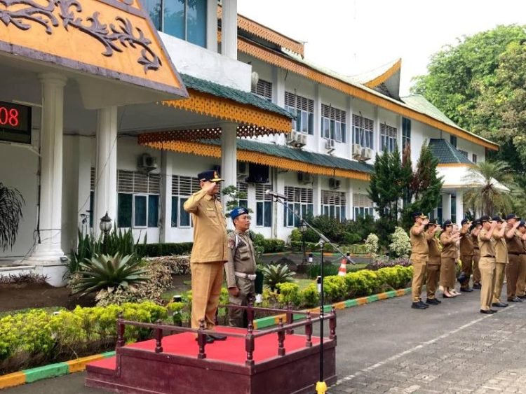 Stabat, POL | Pemerintah Kabupaten Langkat menggelar apel gabungan Aparatur Sipil Negara (ASN) yang dipimpin oleh Asisten Pemerintahan dan Kesejahteraan Rakyat, Drs. H. Mulyono, M.Si, atas nama Pejabat (Pj) Bupati Langkat H.M. Faisal Hasrimy, AP, M.AP, Senin (9/9/2024) di Halaman Kantor Bupati Langkat.