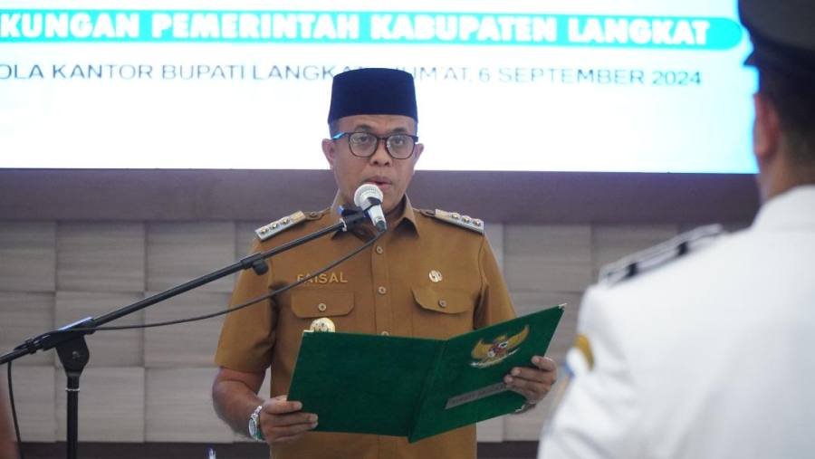 Stabat, POL | Penjabat (Pj) Bupati Langkat, H. M. Faisal Hasrimy, AP., M.AP, melantik dan mengambil sumpah 23 pejabat di lingkungan Pemerintah Kabupaten Langkat pada Kamis (6/9/2024) di Ruang Pola Kantor Bupati Langkat. Pelantikan ini meliputi 21 jabatan Administrator, Pengawas, Pelaksana, serta 2 jabatan Fungsional.