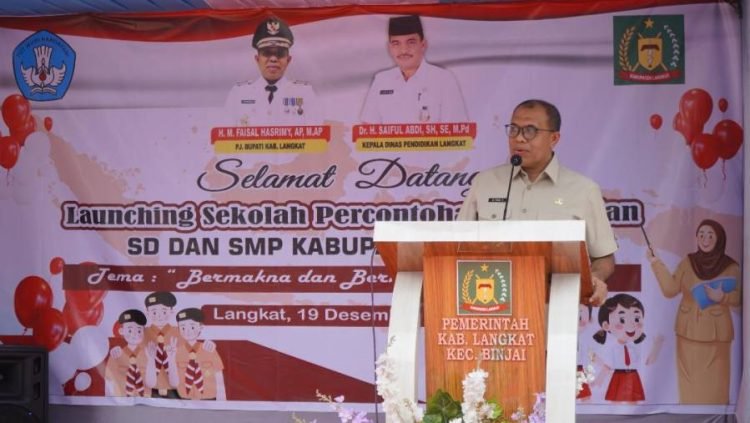Langkat, POL | Penjabat Bupati Langkat, H. M. Faisal Hasrimy, AP., M.AP, resmi meluncurkan program sekolah percontohan atau unggulan tingkat Sekolah Dasar (SD) dan Sekolah Menengah Pertama (SMP) se-Kabupaten Langkat. Acara peresmian berlangsung di SMP Negeri 1 Kecamatan Binjai, Kamis (19/12/2024).