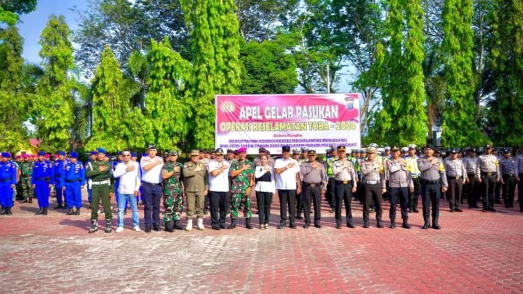 Stabat, POL | Pj.Bupati Langkat H. M. Faisal Hasrimy, AP.,MAP menghadiri apel gelar pasukan keselamatan Toba-2024 dalam rangka terciptanya kamseltibcar Lantas di wilayah Polres Langkat, bertempat di Lapangan Januraga Polres Langkat, Rabu (13/03/2024).