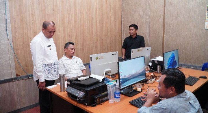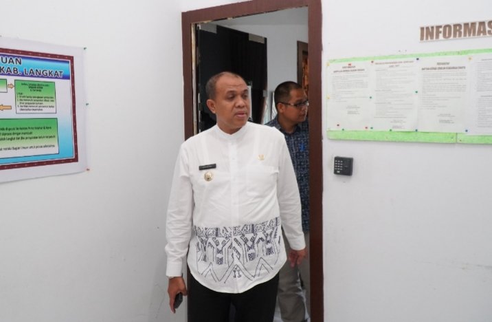Pj Bupati Langkat H.M. Faisal Hasrimy di tengah kesibukannya melaksanakan sidak di beberapa bagian kesekretariatan Pemerintah Kabupaten Langkat pada Jum’at Siang (1/3/30204).