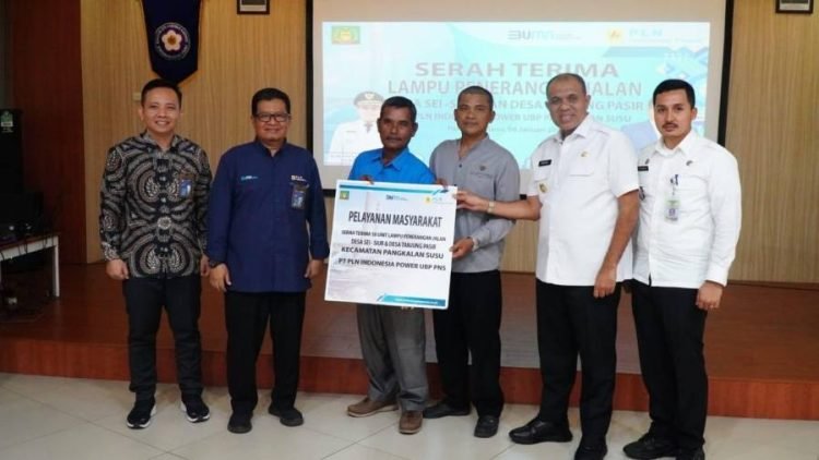 Pangkalan Susu, POL | Pj. Bupati Langkat, H.M. Faisal Hasrimy, AP, M.AP, menghadiri acara serah terima lampu penerangan jalan untuk Desa Sei Siur dan Desa Tanjung Pasir di Aula Lubuk Kertang, Kecamatan Pangkalan Susu, Rabu (8/1/2025). Acara ini merupakan kolaborasi antara Pemerintah Kabupaten Langkat dan PT PLN Indonesia Power UBP Pangkalan Susu untuk meningkatkan kualitas infrastruktur desa.