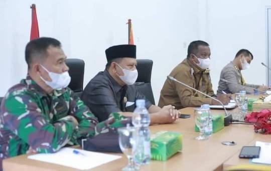 Labuhanbatu, POL | Pejabat Bupati Labuhanbatu Mulyadi Simatupang, S.Pi, M.Si memimpin rapat pembahasan tindak lanjut surat dari Aliansi Ummat dan Ormas Islam (AL-UOIS) Labuhanbatu Nomor : 02/SP/VI/AU/2021 tanggal 10 Juni 2021, perihal penutupan tempat hiburan malam, di ruang rapat kantor bupati setempat, Senin (05/07/2021).